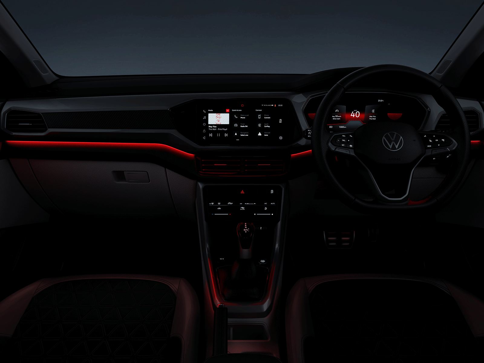 Set the mood for your next big hustle with the sporty Ambient Lighting on the New Taigun.